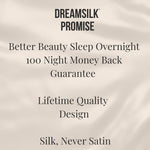 Remember, when you order from DREAMSILK™ you are protected with our DREAMSILK™ Promise - "Better Beauty Sleep Overnight 100 Night Money Back Guarantee".